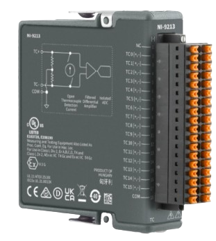 •NI-9213 - 16 channel, up to 75 S/s per channel, ±78 mV C Series Temperature Input Module