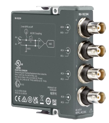 • NI-9234 – 4-Channel, 51.2 kS/s/channel, ±5 V, C Series Sound and Vibration Input Module